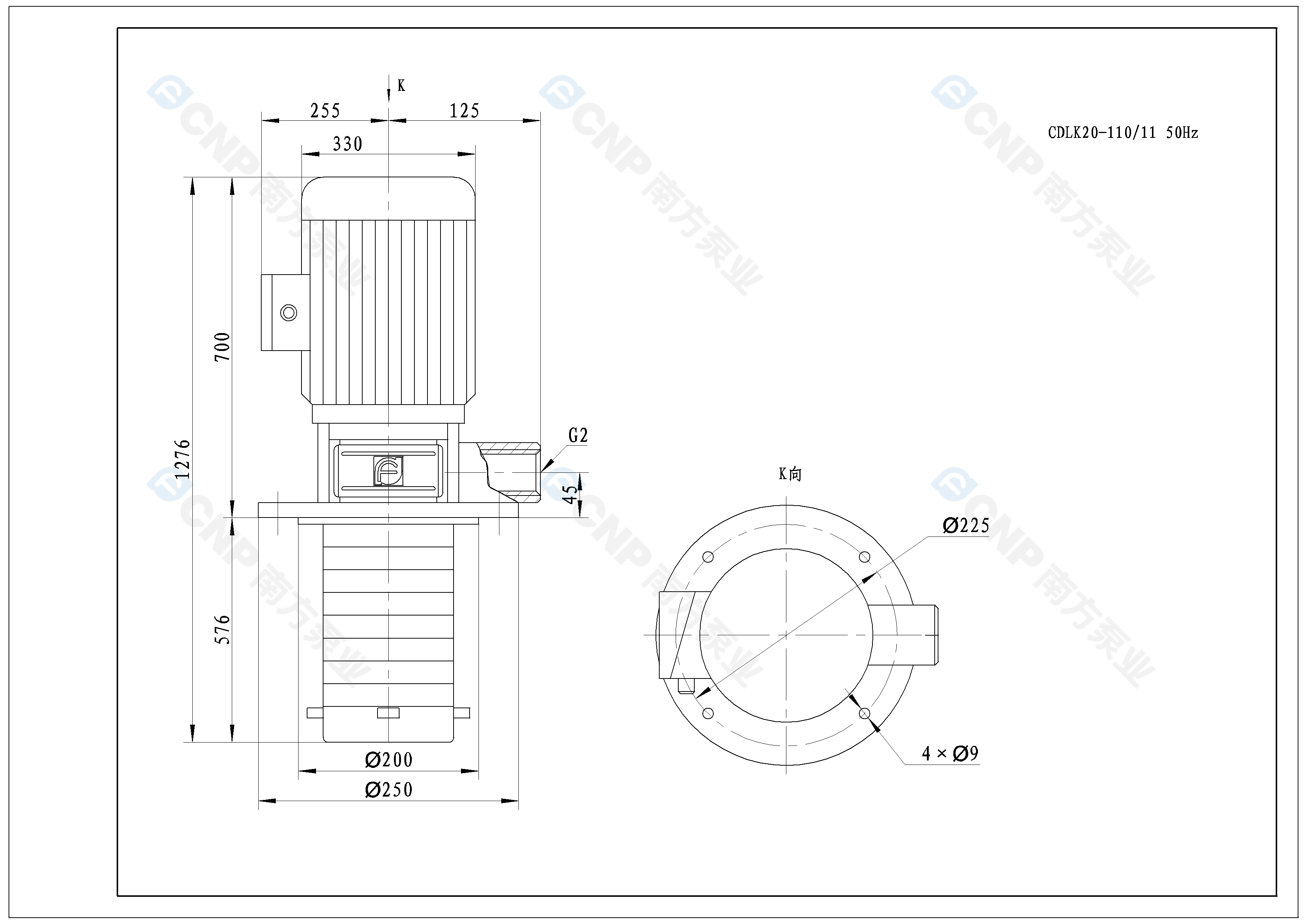 需要南方泵CDLK20-110/11外形CAD文件 請加銷售人員微信索取