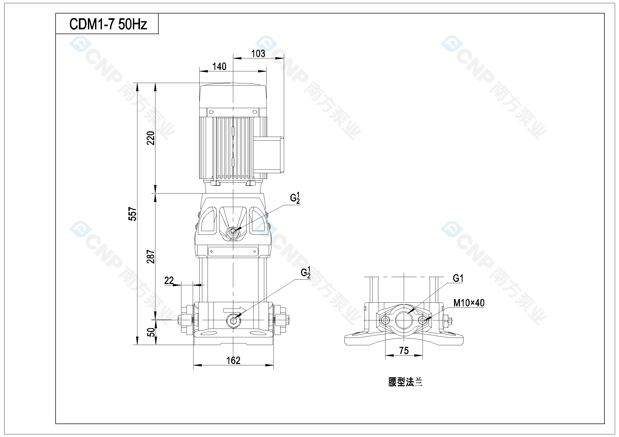 需要南方泵CDM1-7外形CAD文件 請加銷售人員微信索取