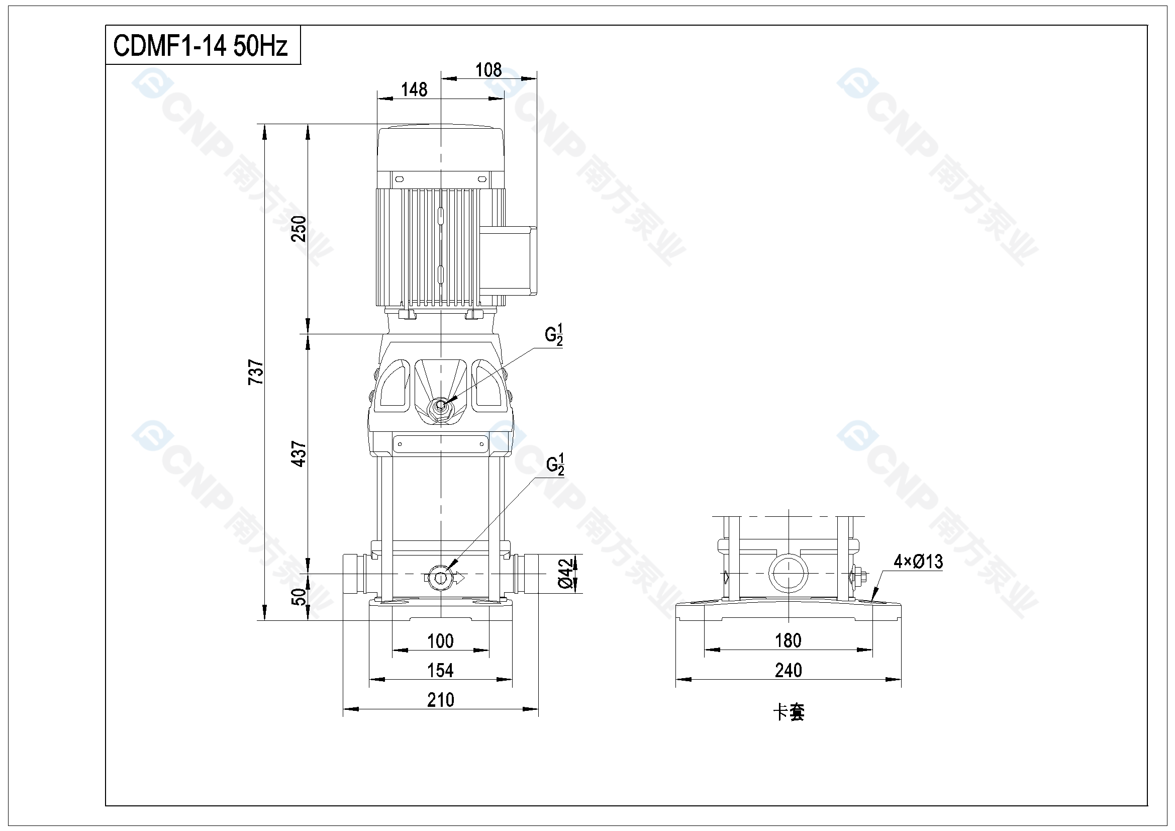 需要南方泵CDM1-14外形CAD文件 請加銷售人員微信索取