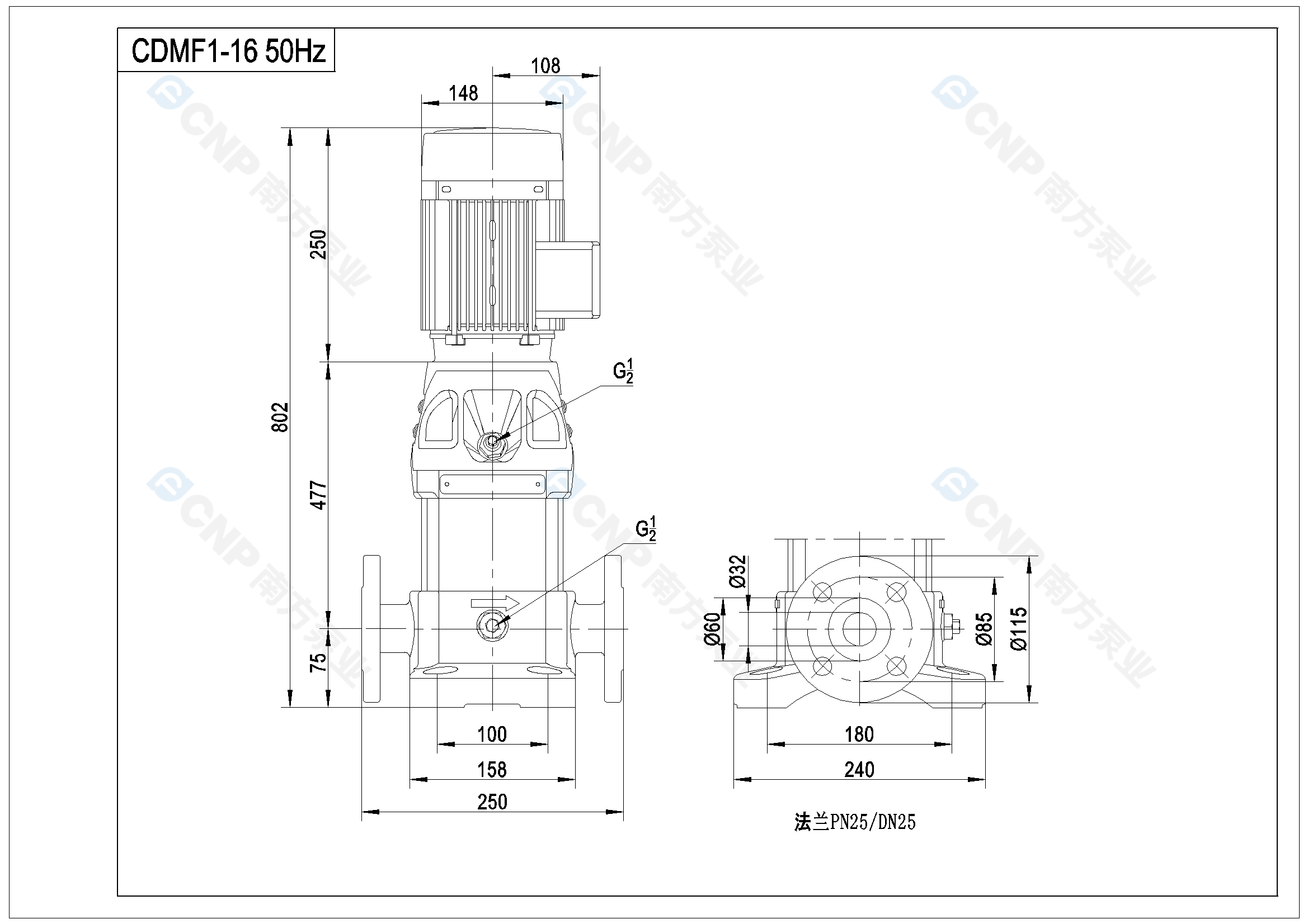 需要南方泵CDM1-16外形CAD文件 請加銷售人員微信索取