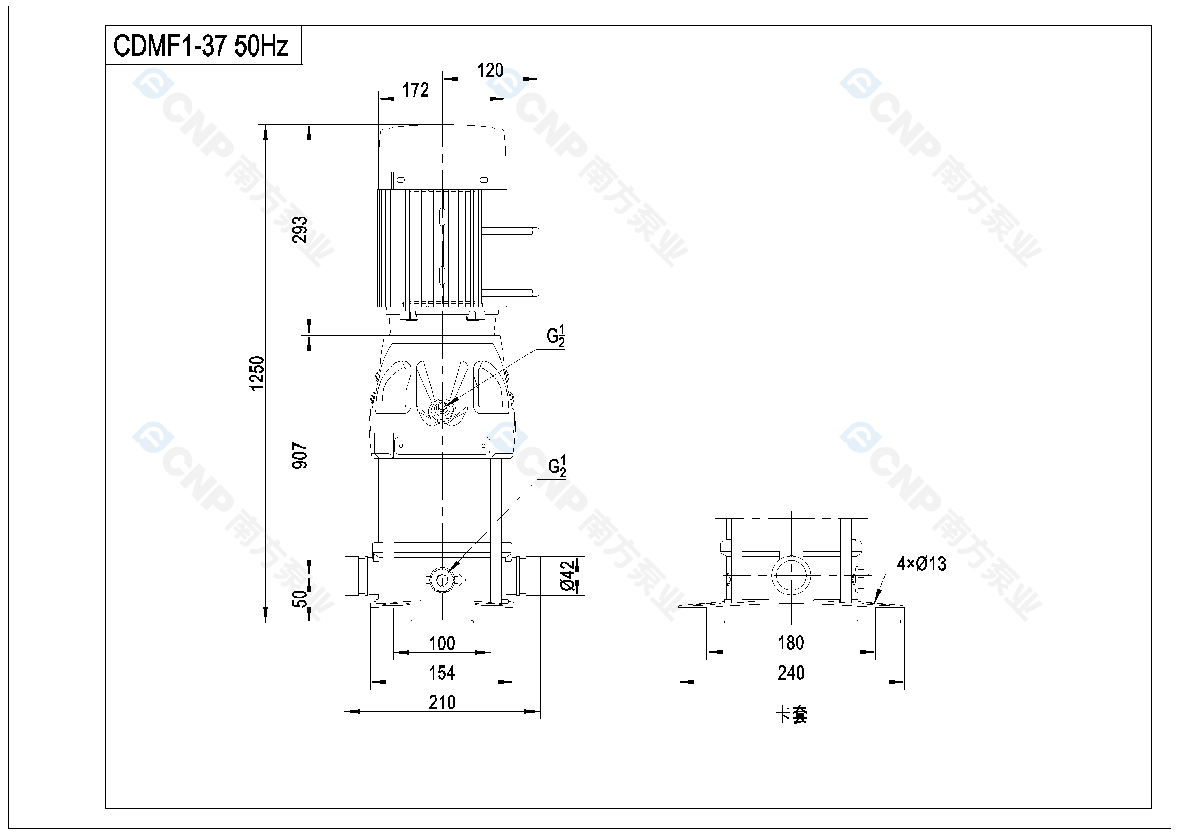 需要南方泵CDM1-37外形CAD文件 請加銷售人員微信索取