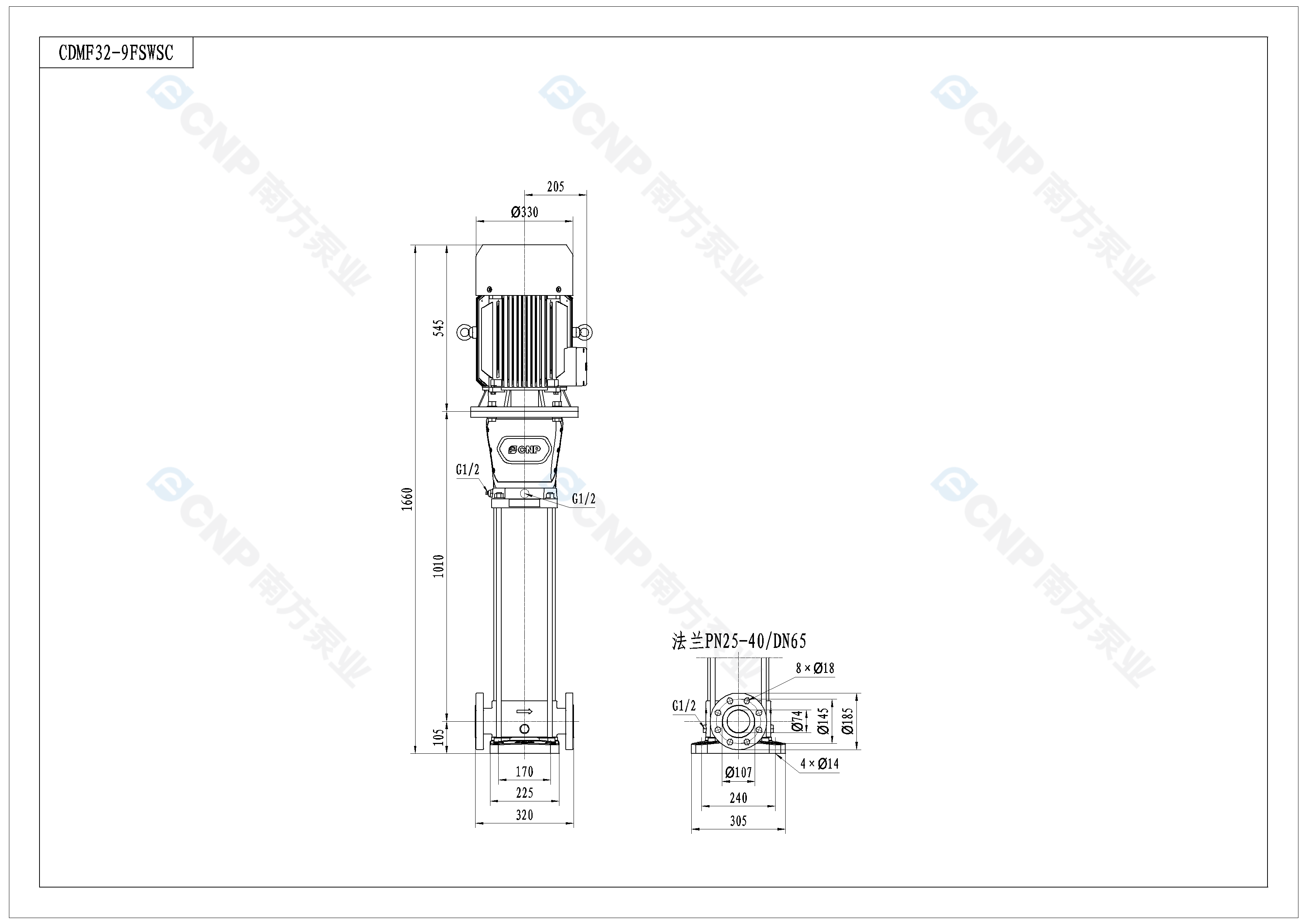 需要南方泵CDM32-9外形CAD文件 請加銷售人員微信索取