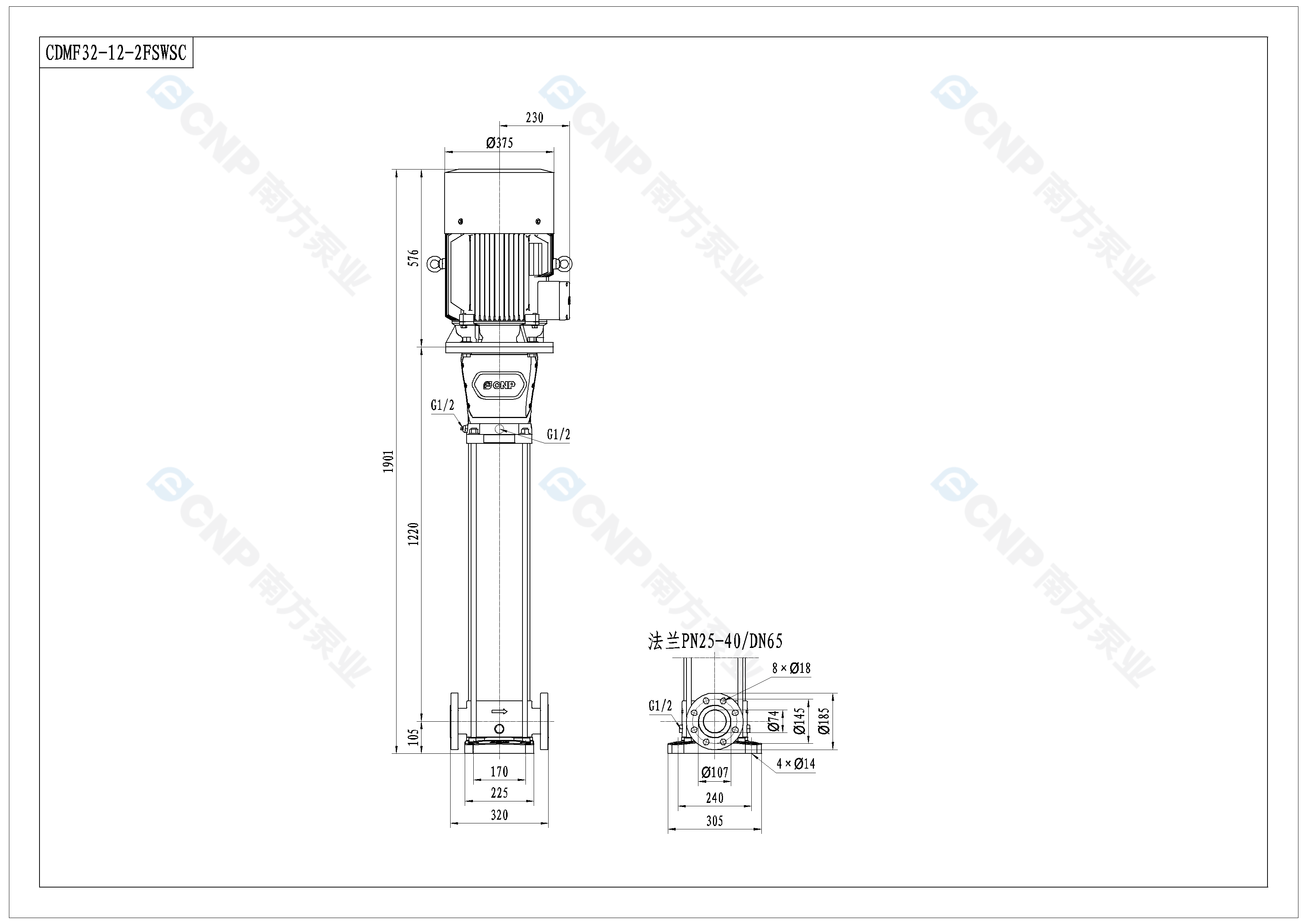 需要南方泵CDM32-12-2外形CAD文件 請加銷售人員微信索取