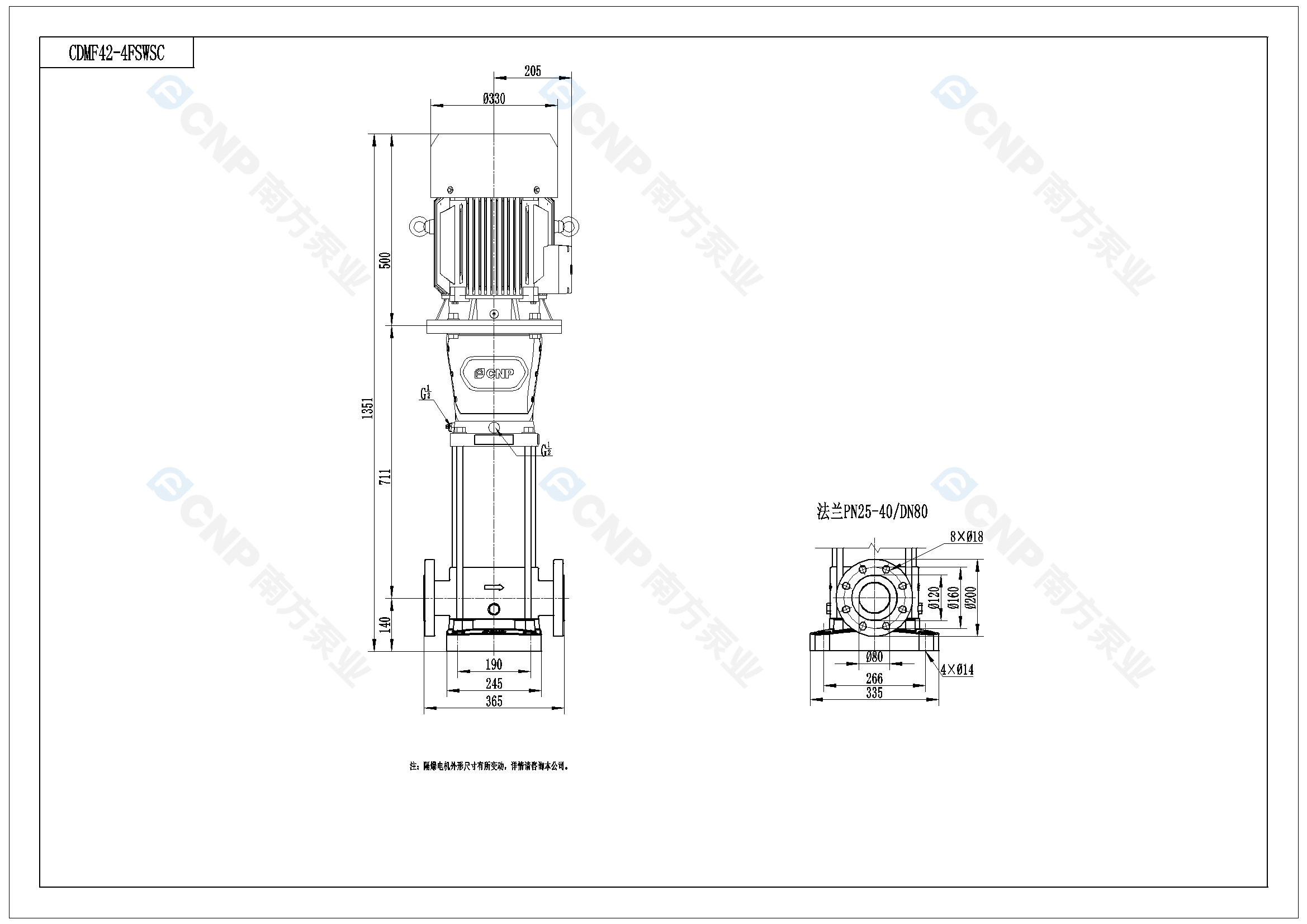 需要南方泵CDM42-4外形CAD文件 請加銷售人員微信索取