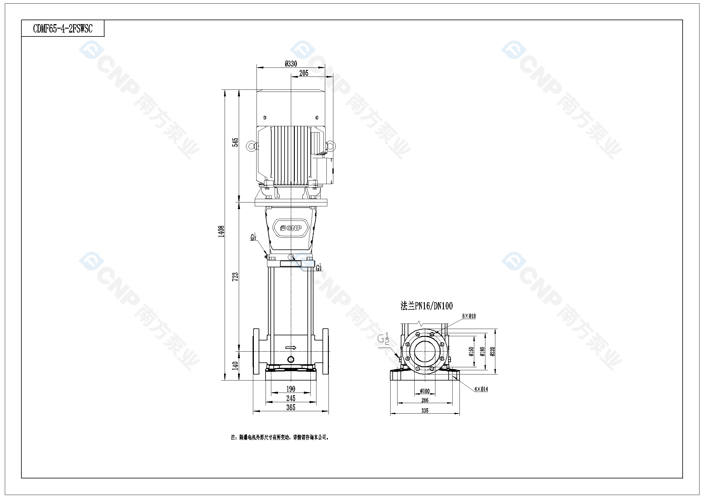 需要南方泵CDM65-4-2外形CAD文件 請加銷售人員微信索取