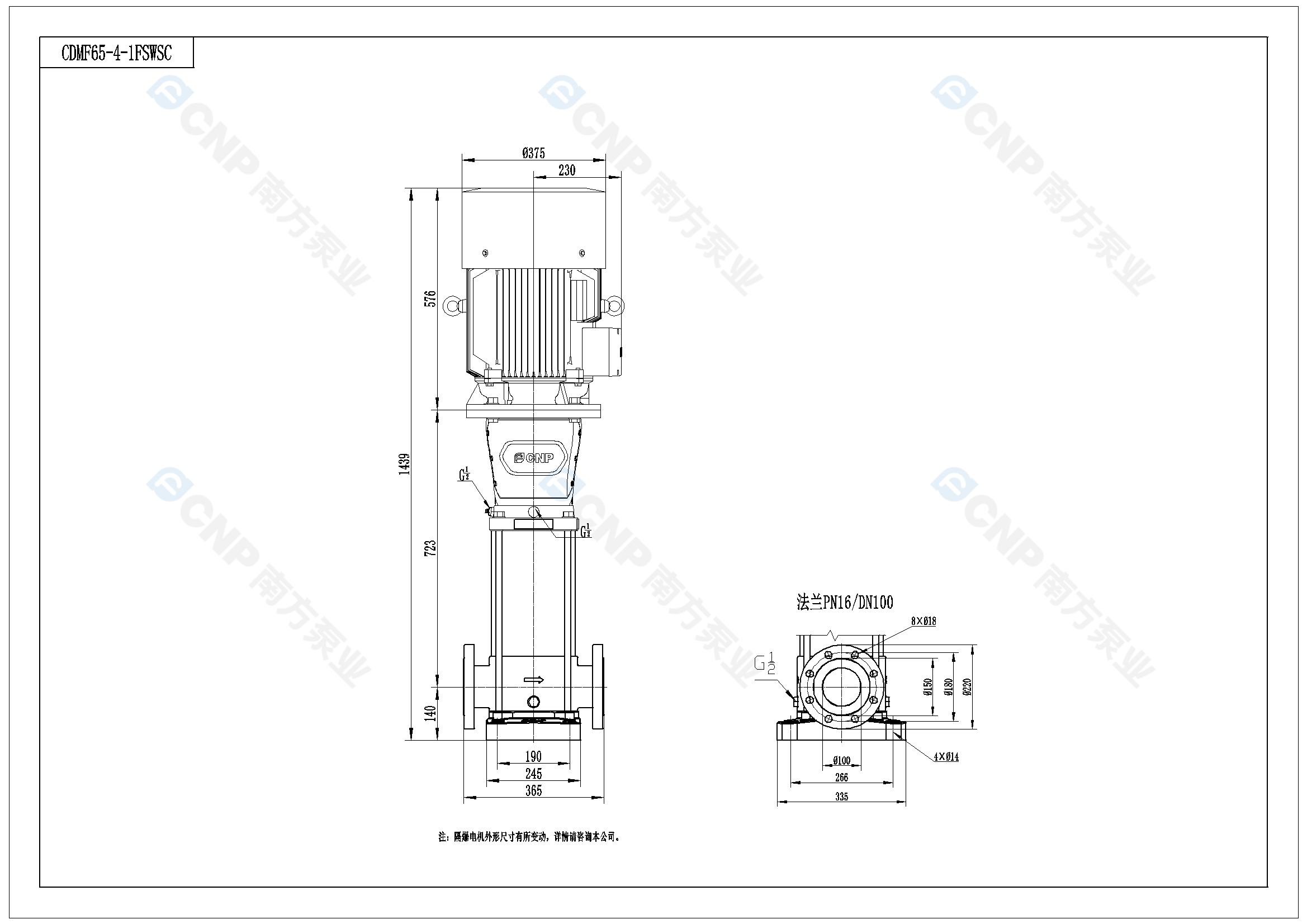 需要南方泵CDM65-4-1外形CAD文件 請加銷售人員微信索取