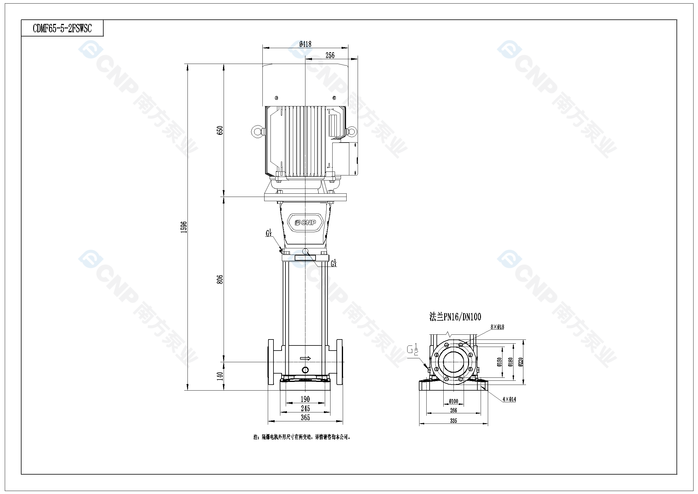 需要南方泵CDM65-5-2外形CAD文件 請加銷售人員微信索取