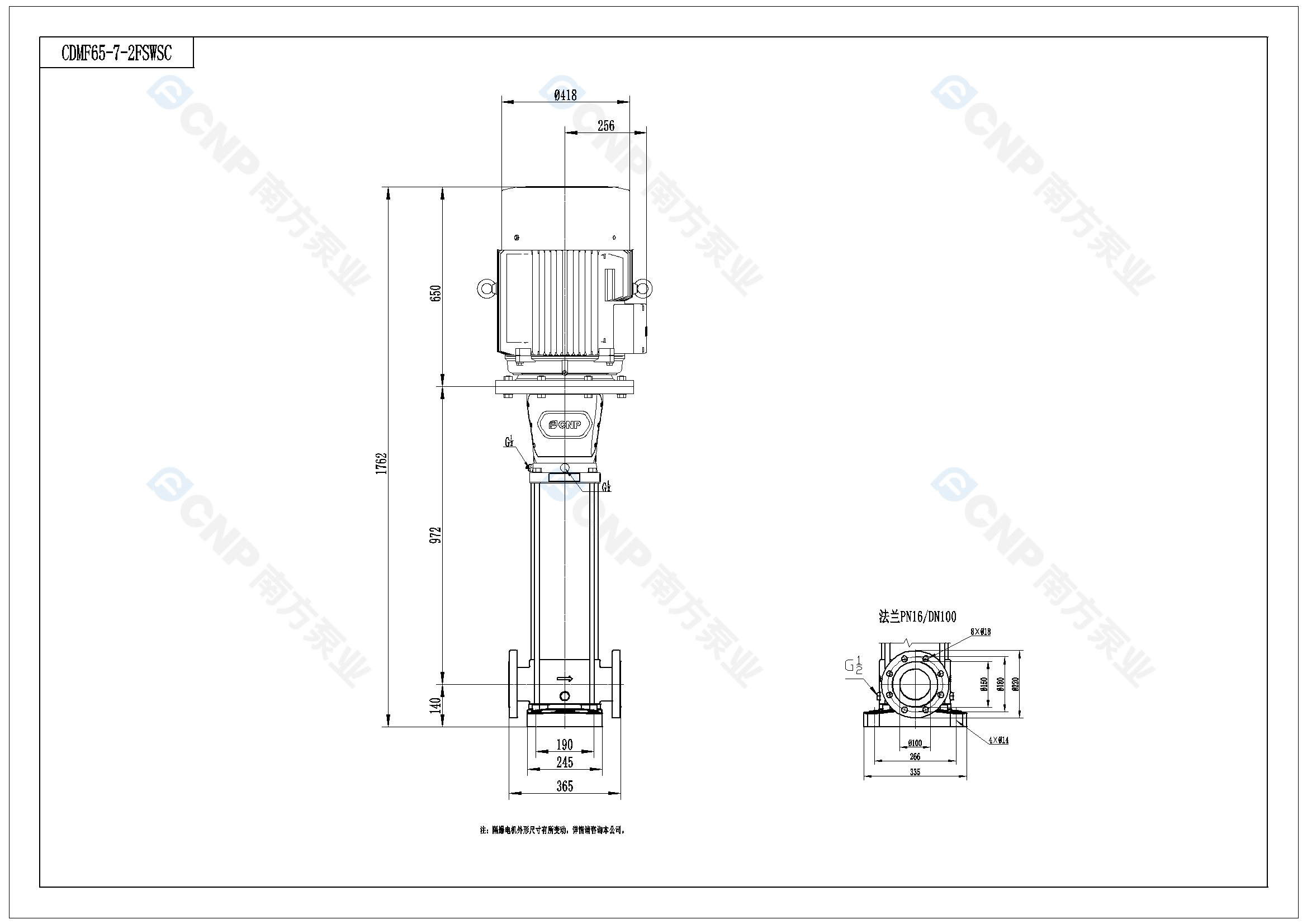 需要南方泵CDM65-7-2外形CAD文件 請加銷售人員微信索取