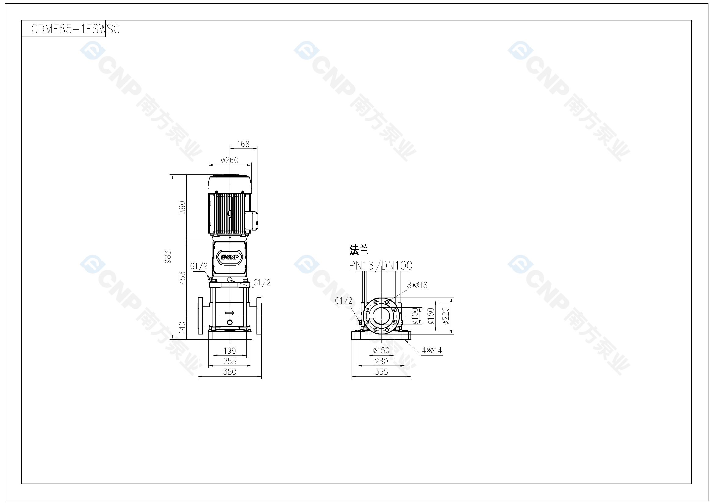 需要南方泵CDM85-1外形CAD文件 請加銷售人員微信索取