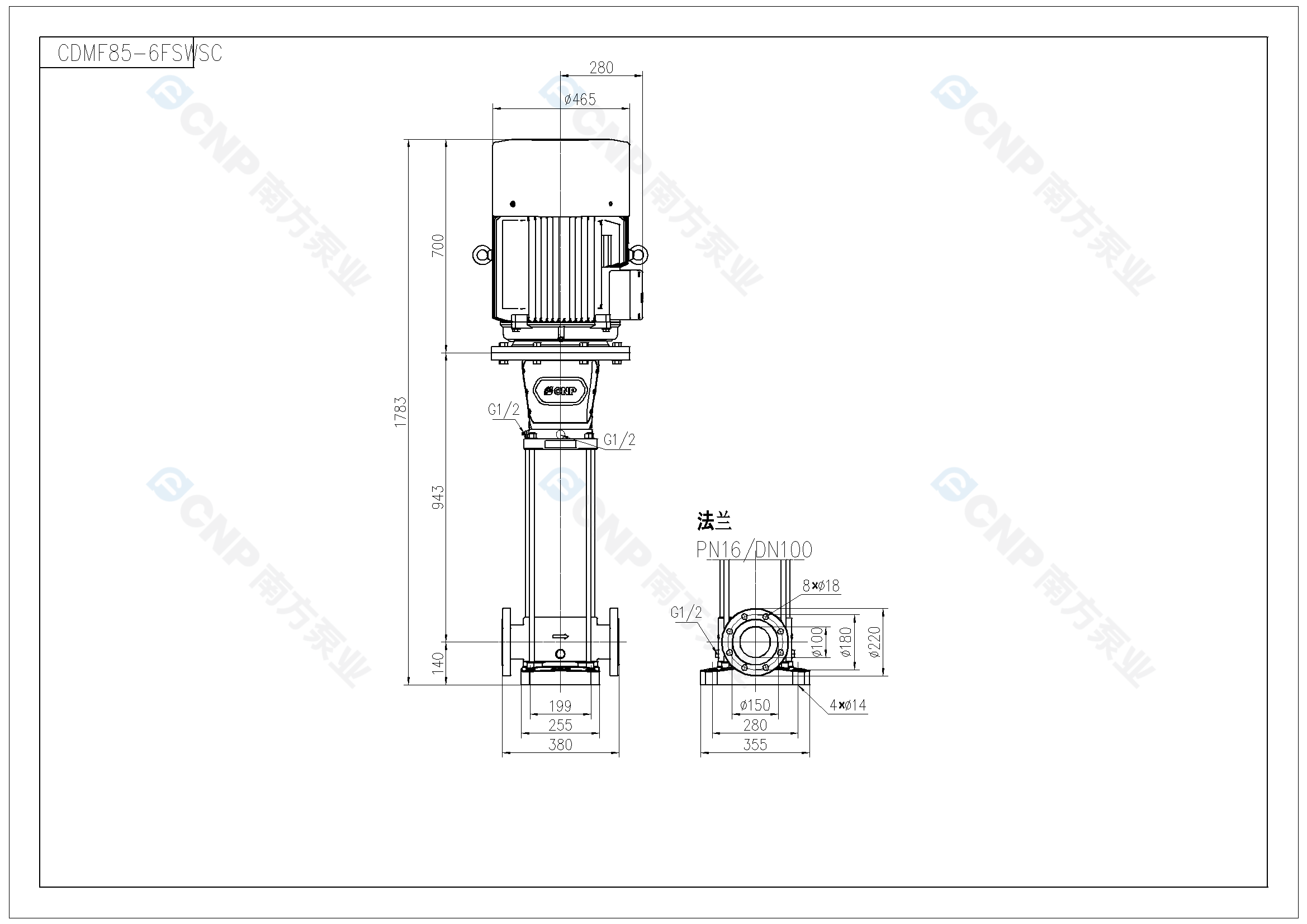 需要南方泵CDM85-6外形CAD文件 請加銷售人員微信索取
