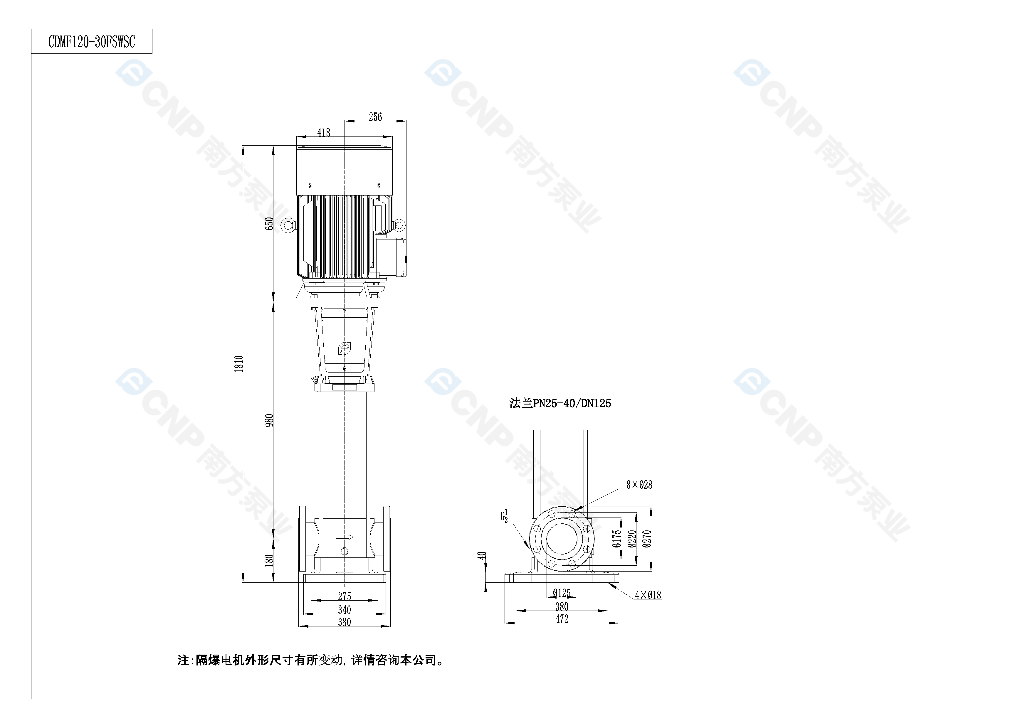 需要南方泵CDM120-3外形CAD文件 請加銷售人員微信索取