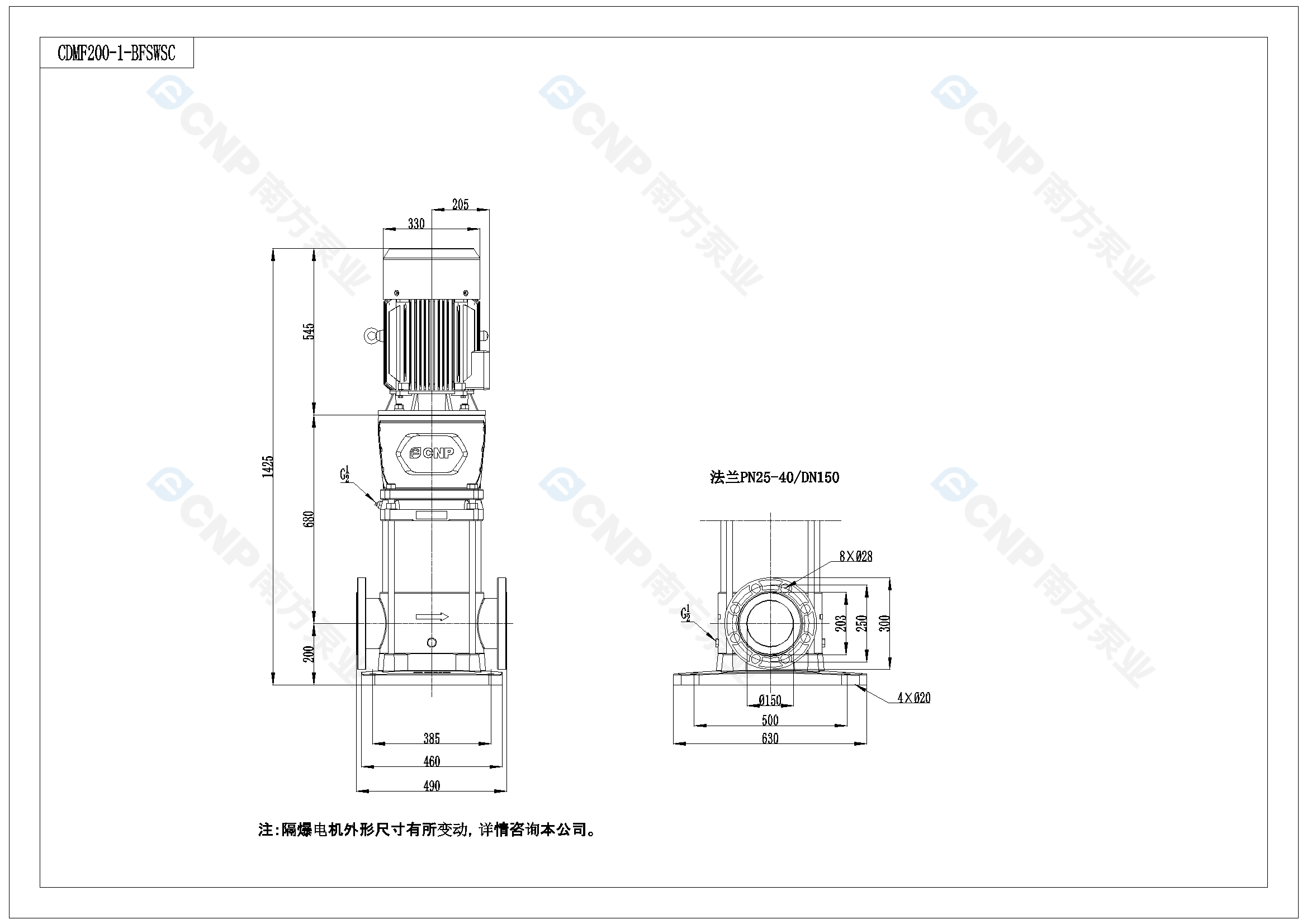 南方泵業CDM200-1-B水泵明細參數