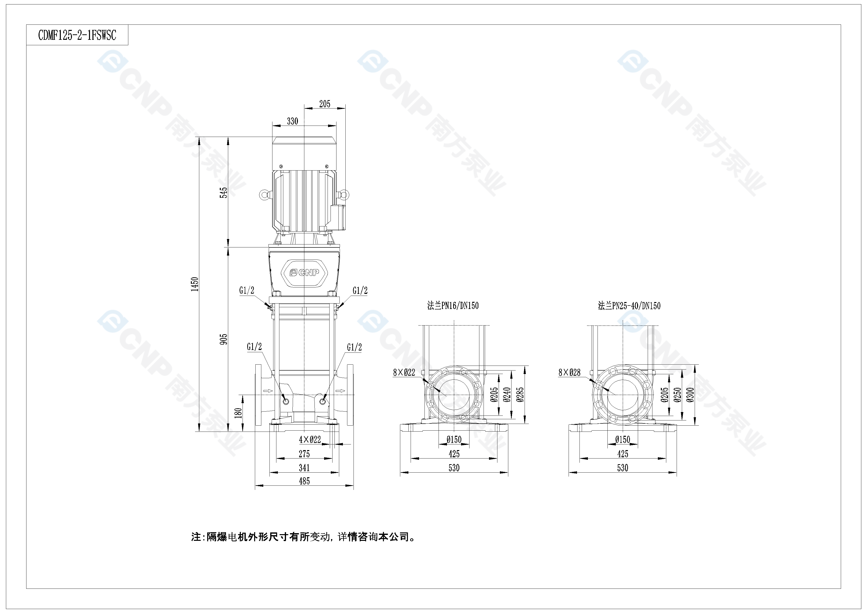 需要南方泵CDM125-2-1外形CAD文件 請加銷售人員微信索取