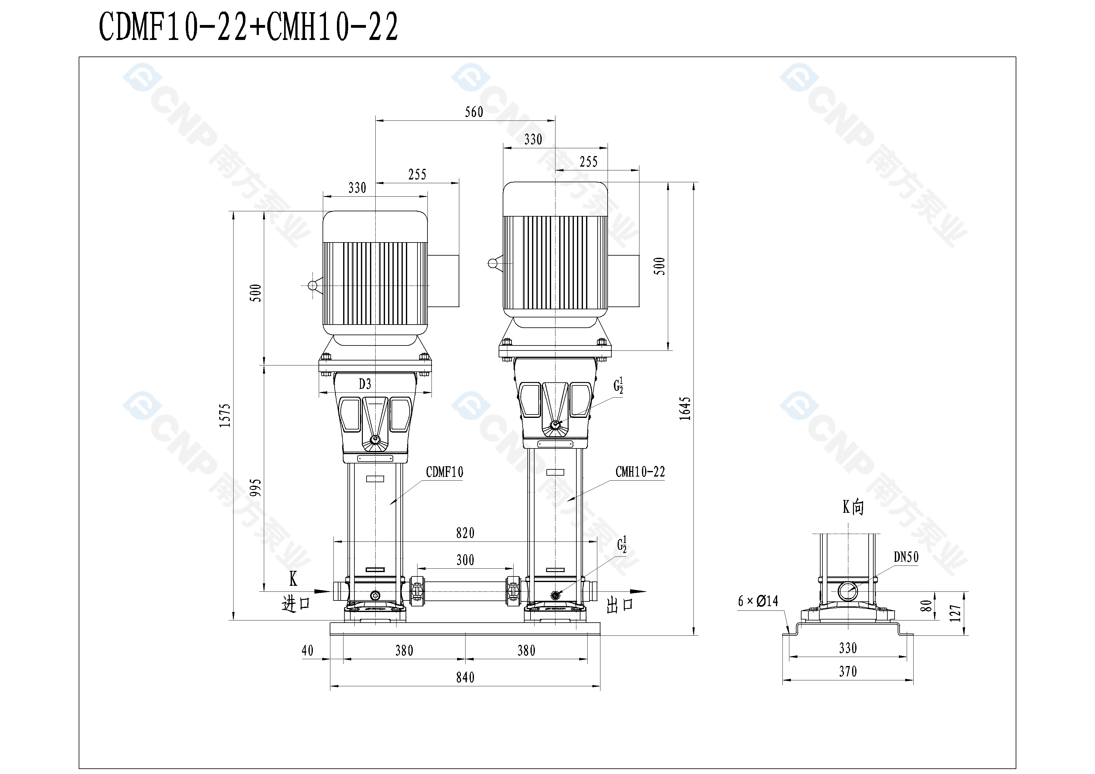 需要南方泵CDMF10-22+CMH10-22外形CAD文件 請加銷售人員微信索取