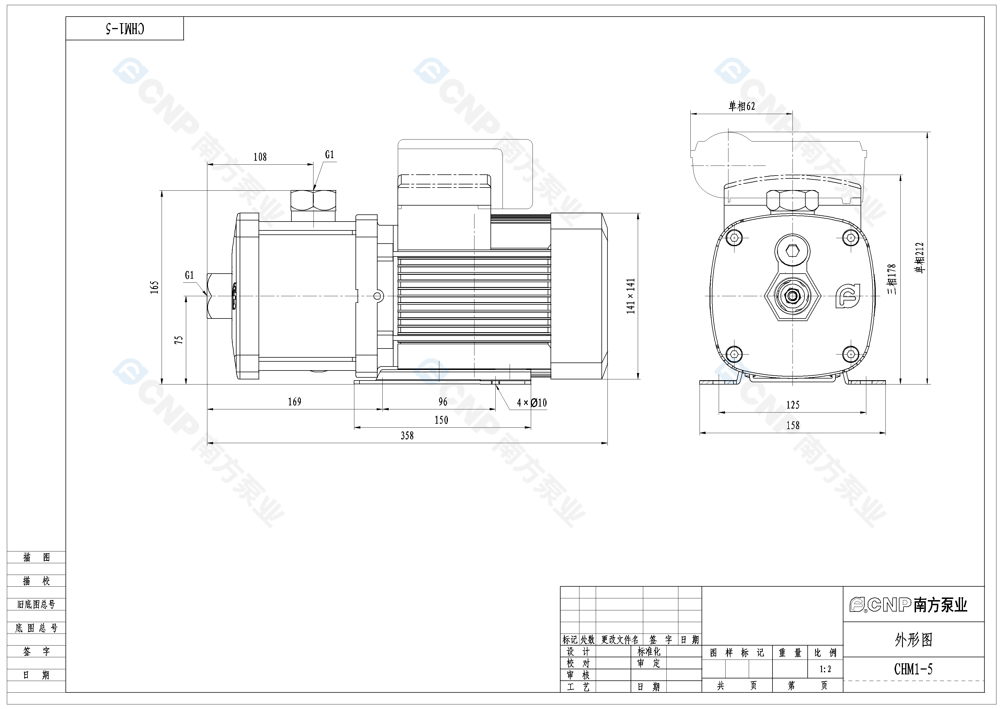 需要南方泵CHM1-5外形CAD文件 請加銷售人員微信索取