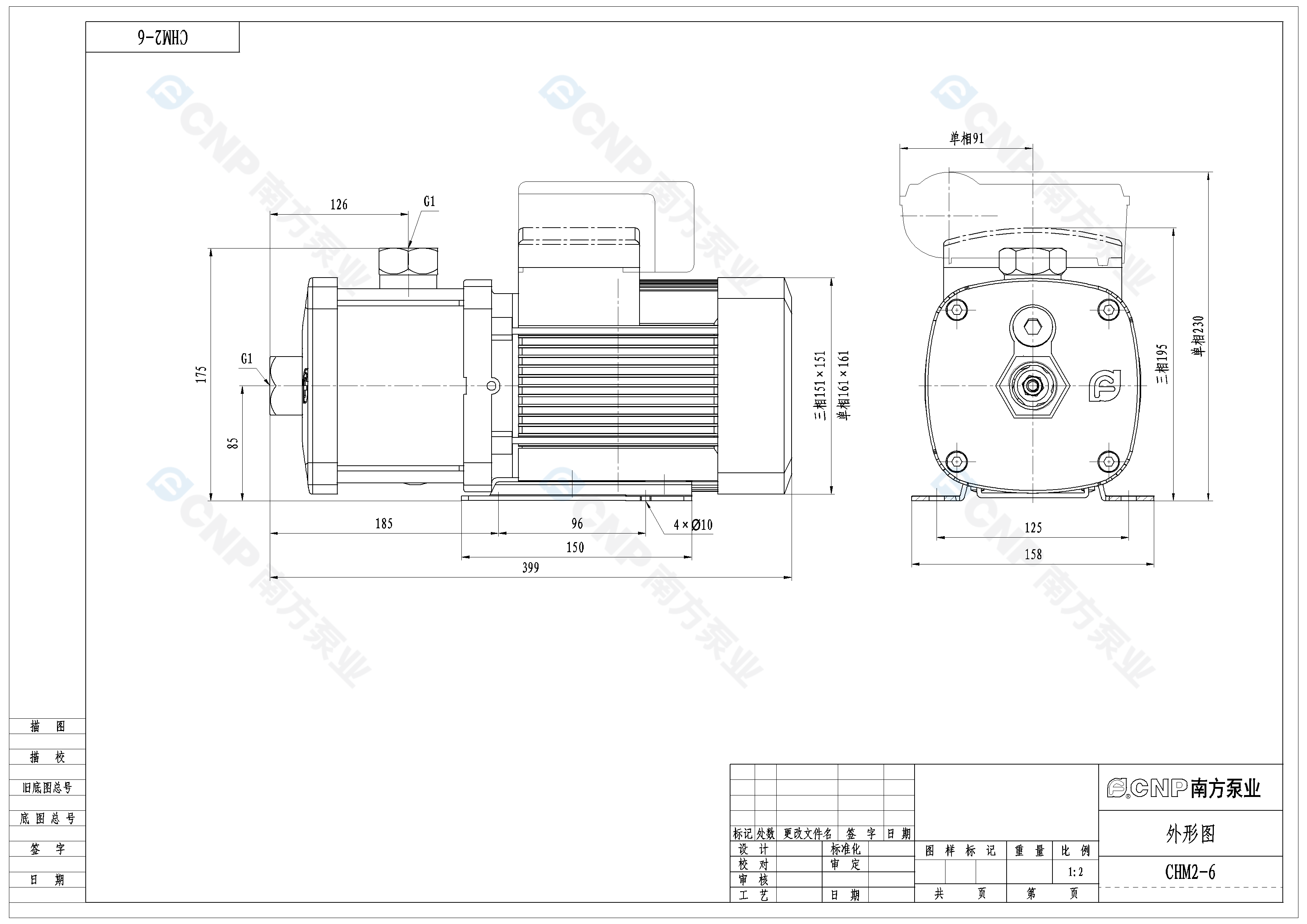 需要南方泵CHM2-6外形CAD文件 請加銷售人員微信索取