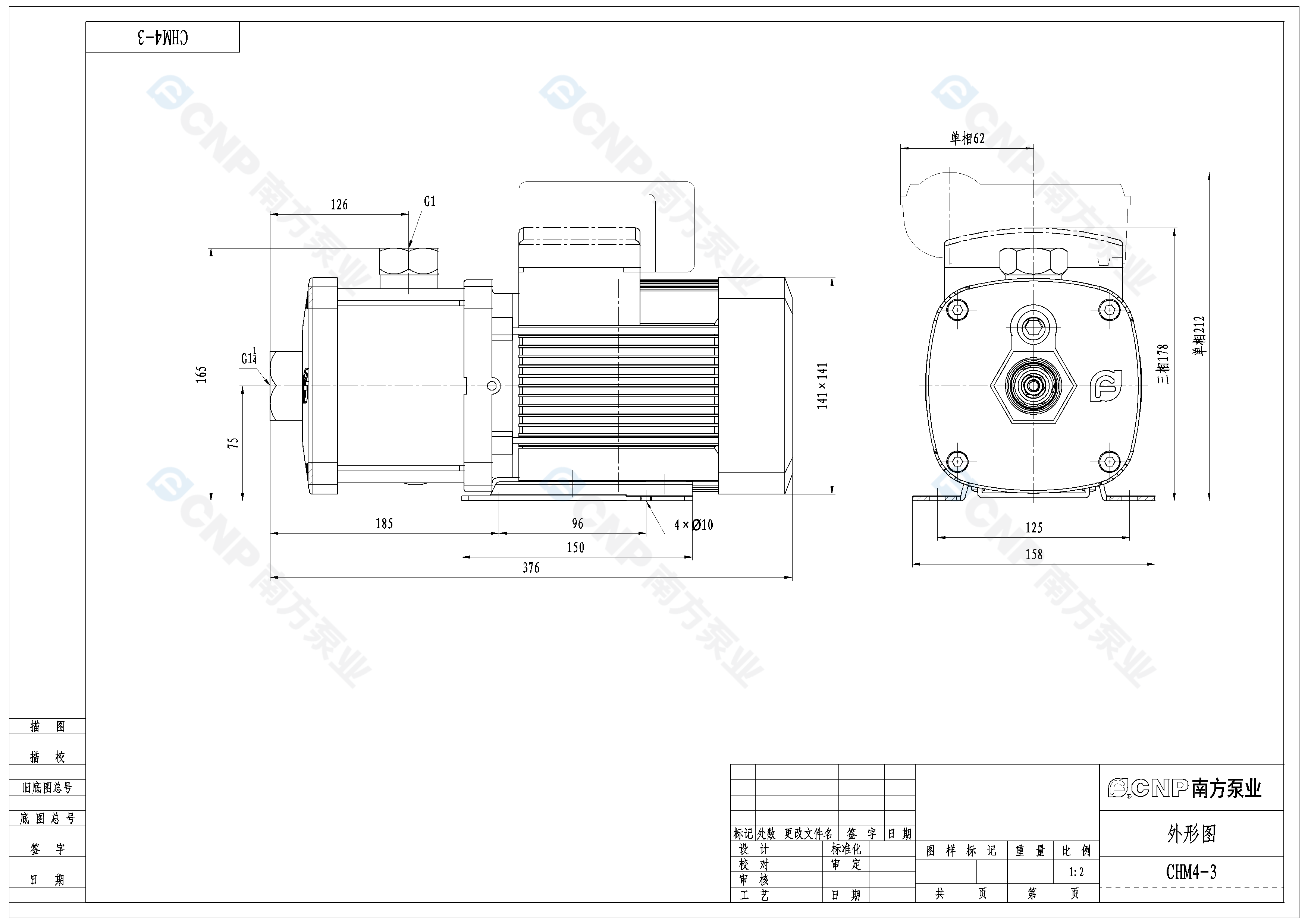 需要南方泵CHM4-3外形CAD文件 請加銷售人員微信索取