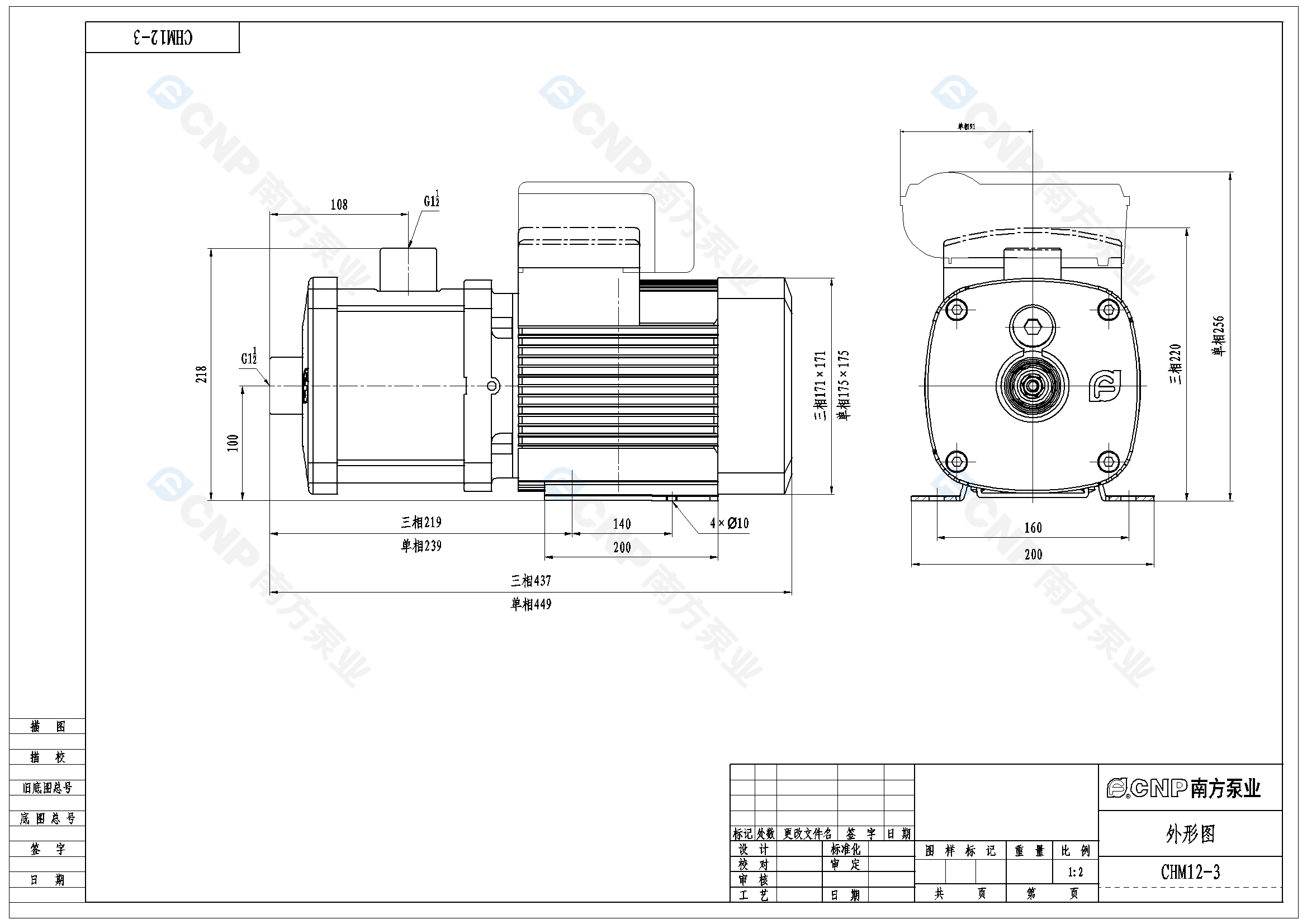 需要南方泵CHM12-3外形CAD文件 請加銷售人員微信索取