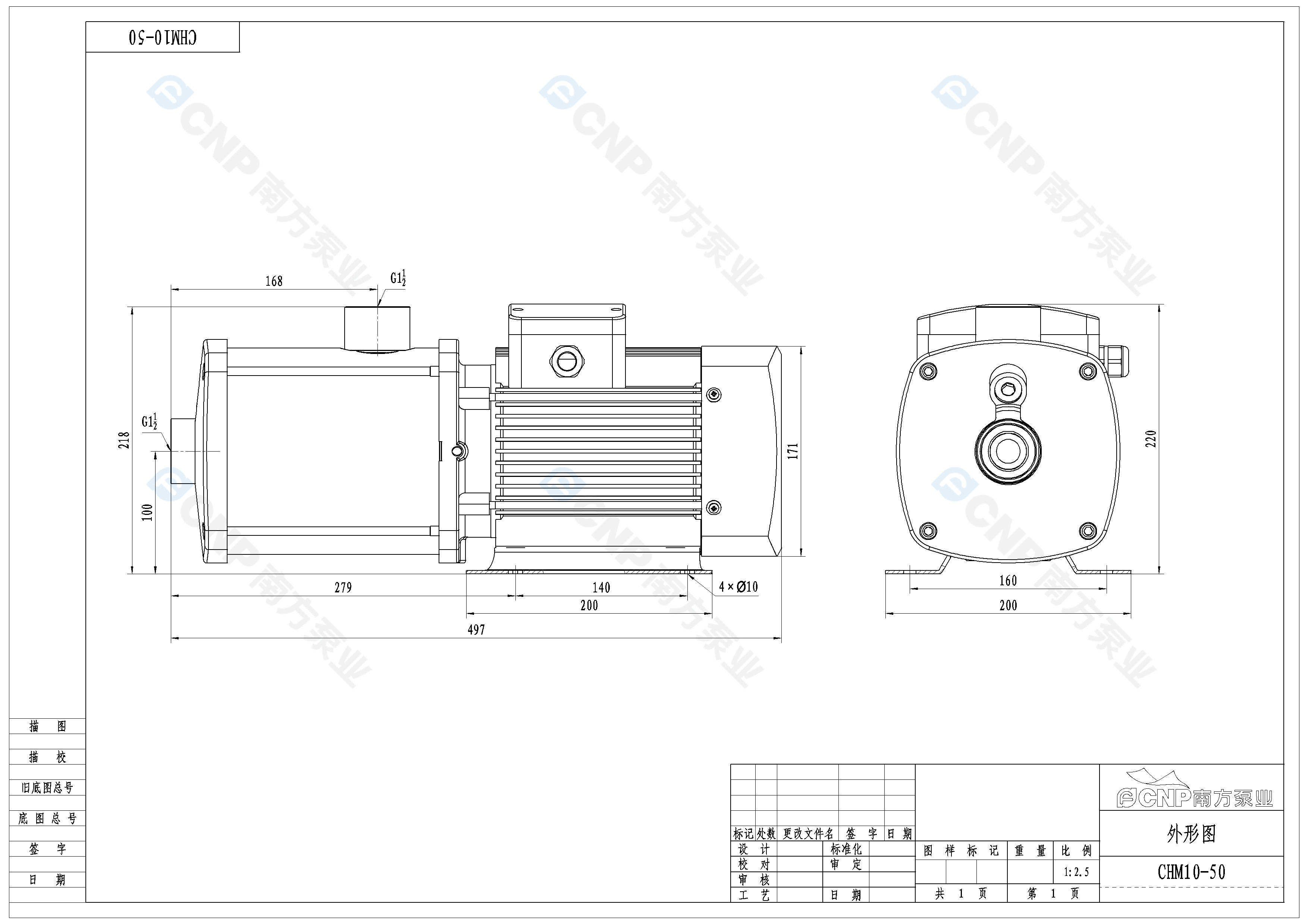 需要南方泵CHM10-50外形CAD文件 請加銷售人員微信索取