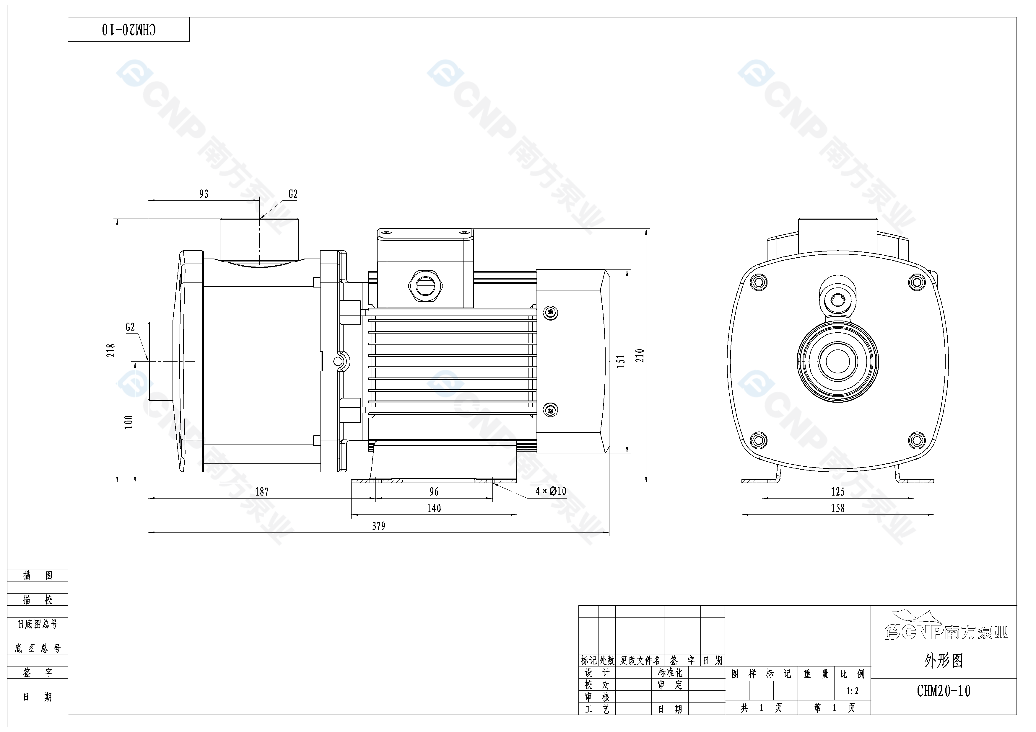需要南方泵CHM20-10外形CAD文件 請加銷售人員微信索取