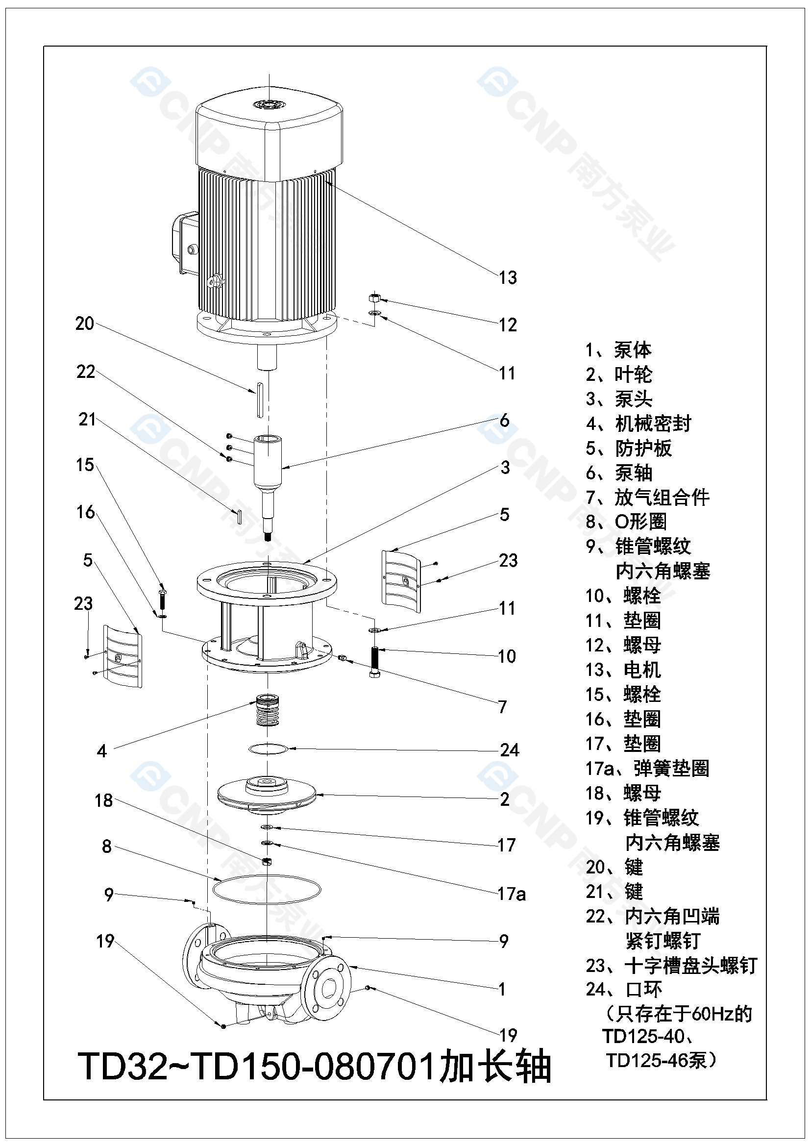 需要南方泵TD100-33/2爆炸圖CAD文件 請加銷售人員微信索取
