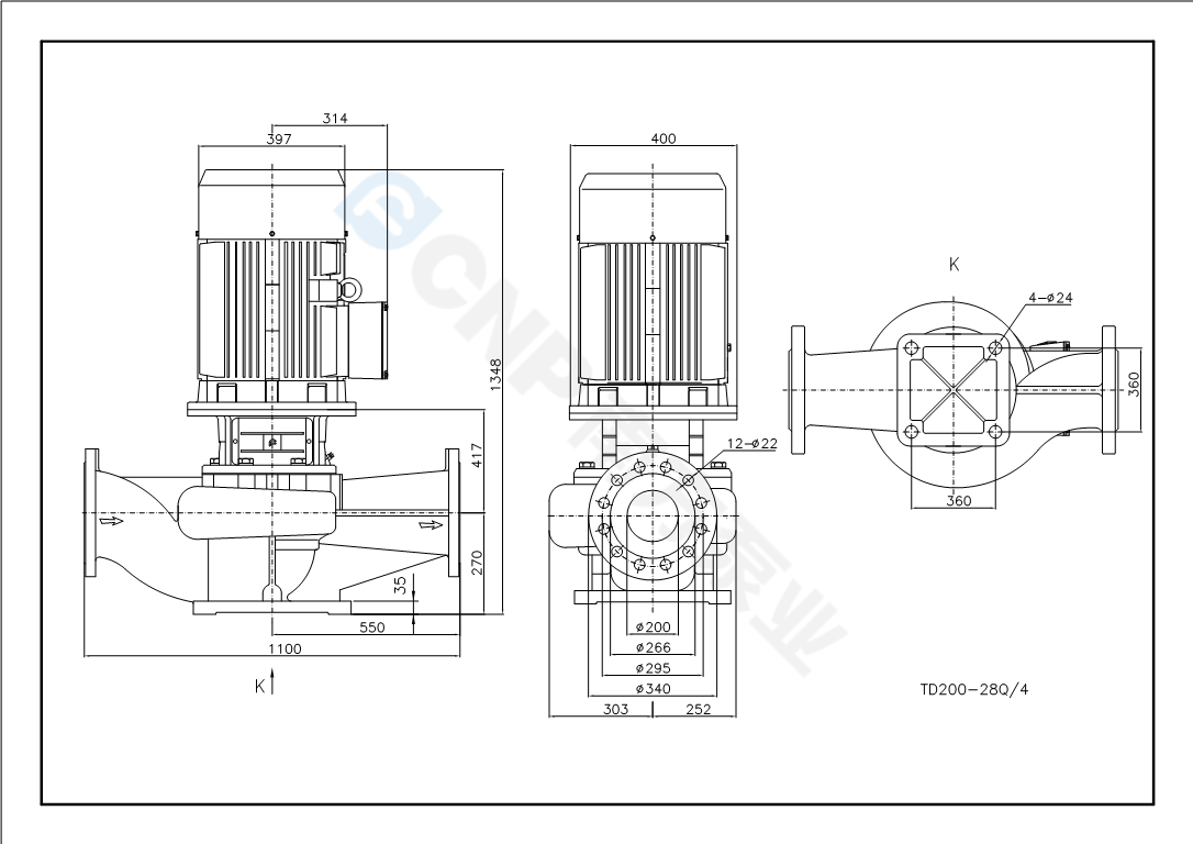 您的位置: 南方泵業(yè) > 在線選型 > 管道泵 > TD(50Hz) > TD200-28Q/4