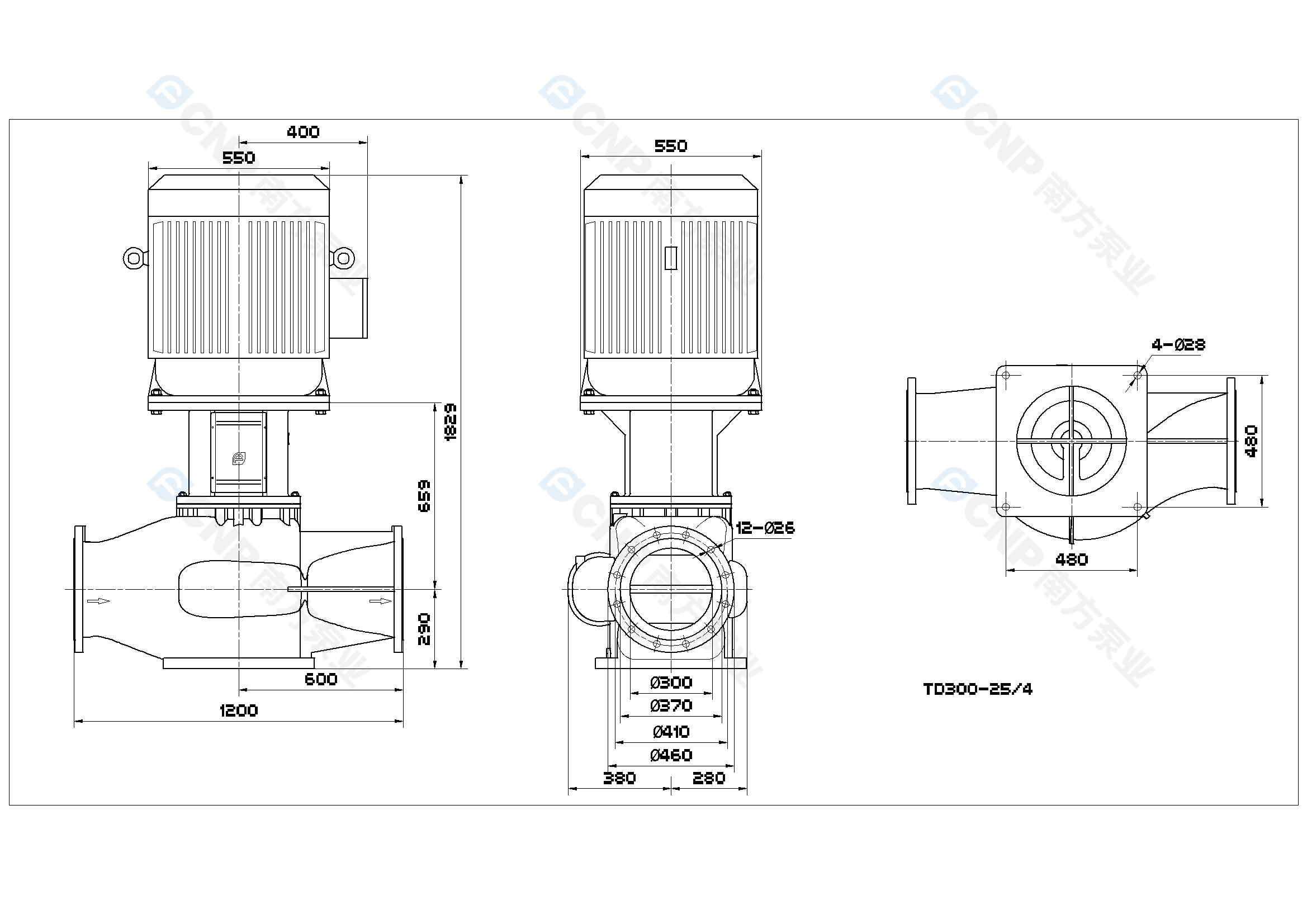 需要南方泵TD300-25/4外形CAD文件 請加銷售人員微信索取